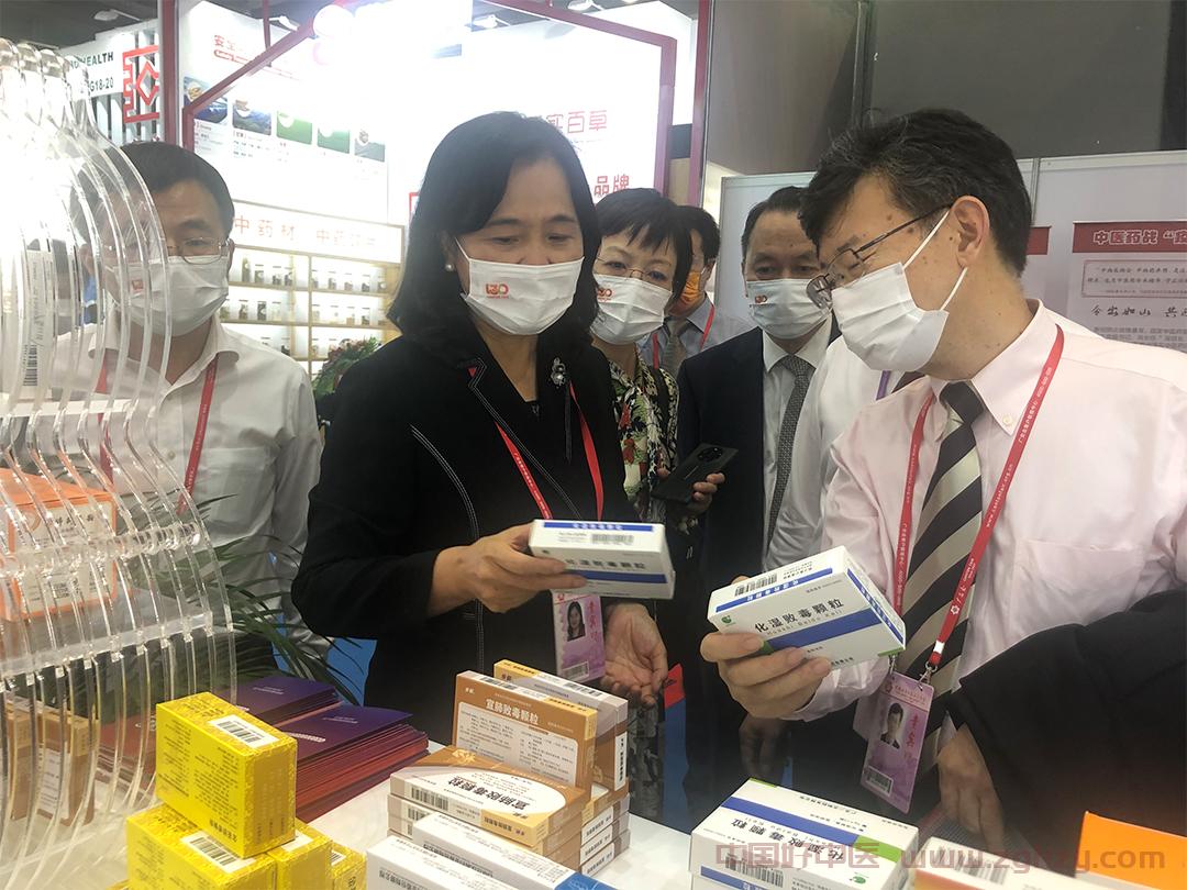 余艳红实地参观了中医药企业展出的“三药三方”等中药产品,重点询问了各中药产品出口国家、出口量及出口价格等,并提出希望通过中医药全行业统筹布局,让广交会成为更好向世界展示中医药风采的重要窗口,进一步加速中医药国际化发展。
